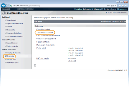 Kattintson az [Biztonság]  [Távvezérlő-beállítások] gombra.