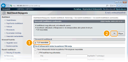 [TLS használata] Ha a TLS protokollt használja a Távoli felhasználói felülettel való kommunikációhoz, jelölje be a jelölőnégyzetet. Ha nem, akkor törölje a jelet a jelölőnégyzetből.