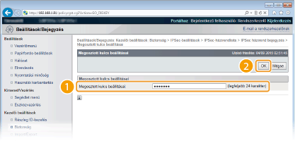 Adja meg legfeljebb 24 alfanumerikus karakterrel az előmegosztott kulcsot, majd kattintson az [OK] gombra.