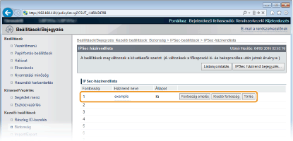 A kezelőpanel használatávalAz IPSec kommunikációt a kezelőpanel beállítás menüjében is engedélyezheti, ill. letilthatja. IPSec