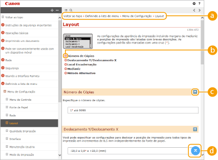 Clique para definir os parâmetro e determinar como Guia do usuário é exibido, como tamanho ou layout de caractere.