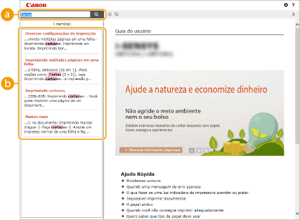 Clique para exibir informações sobre como visualizar o Guia do usuário, como realizar uma pesquisa e outras informações.