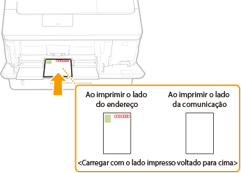 Antes de carregar os envelopes ou cartões postais, tome algumas providências como aplainar quaisquer curvas neles. Preste atenção também à orientação dos envelopes ou cartões postais e o lado que está voltado para cima. Observe que os envelopes ou cartões postais não podem ser carregados na gaveta de papel.