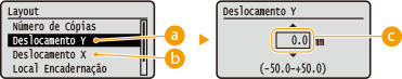 Você pode selecionar <Ajust. Posição Impr.> em <Manutenção Usuário> para especificar finamente a posição de impressão para cada fonte de papel. A faixa de valores de deslocamento disponíveis é de -5,0 a +5,0 mm. Ajustar Posição de Impressão