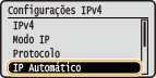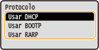 Selecione <Usar DHCP>, <Usar BOOTP> ou <Usar RARP> e pressione