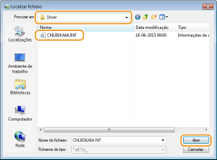 Especifique a pasta que contém os drivers adicionais, selecione o arquivo INF e clique em [Abrir].