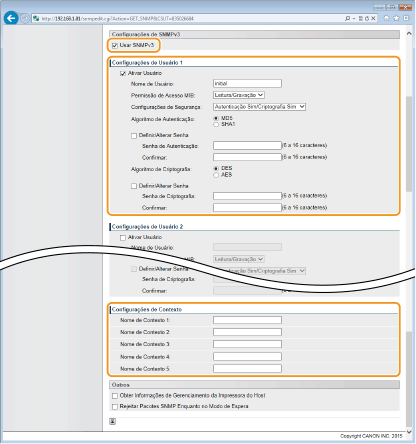 Se você marcar a caixa de seleção, os aplicativos que usam o protocolo SNMP, como o software Canon imageWARE Series, poderão ser desativados para acessar a máquina.