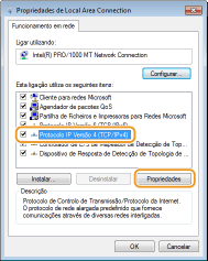 Marque a caixa [Protocolo TCP/IP Versão 4 (TCP/IPv4)] ou [Protocolo de Internet] e clique em [Propriedades].