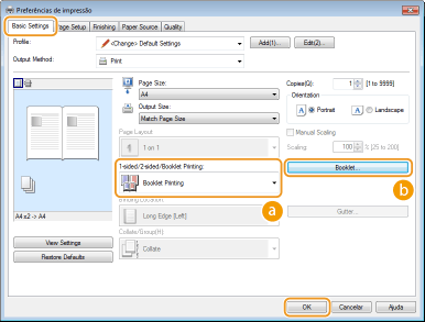 Selecione [Impressão de livreto] em [Impressão de um lado/dos dois lados/de livreto]