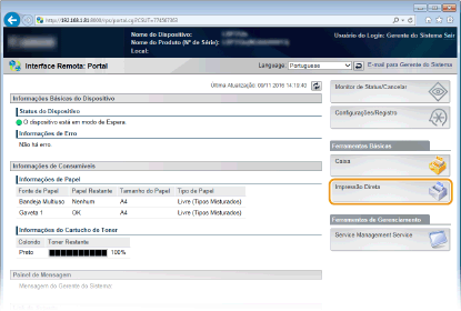 Se você clicar em [Ir Para Lista de Trabalhos], a página [Status do Trabalho] é exibida para mostrar o status de impressão. Verificando o status atual dos documentos impressos