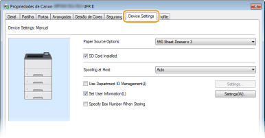Clique na guia [Configurações do dispositivo] e especifique as configurações necessárias.