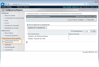 Clique em [Gerenciamento de ID de Departamento] e registre ou edite IDs de departamento.