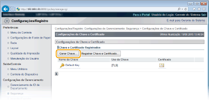 Um par de chaves não pode ser excluído se estiver sendo usado atualmente para alguma finalidade, como quando "TLS" ou "IEEE 802.1X" é exibido em [Uso da Chave]. Neste caso, desative a função ou substitua o par de chaves antes de excluí-lo.