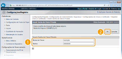 [Configurações de Chave e Certificado] ou [Configurações de Certificado CA].