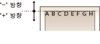 인쇄 위치 확인 표시가 올바른 위치를 벗어나 인쇄된 경우에는, 인쇄 위치를 조정해야 합니다. 인쇄 위치를 조정할 때는, "+" 및 "-"를 사용해 방향을 지정하고, "mm" 를 사용해 거리를 지정하십시오. 인쇄 위치를 위로 조정하려면 "-"를, 아래로 조정(세로 위치 조정) 하려면"+"를 사용합니다. 인쇄 위치를 왼쪽으로 조정하려면 "-"를, 오른쪽으로 조정(가로 위치 조정시) 하려면 "+"를 사용합니다.