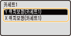 조작 패널의 설정 메뉴에서 <Y 위치보정> 및 <X 위치보정>를 사용하여 용지 공급원에 상관없이 모든 종류의 인쇄에 인쇄 위치를 조정할 수 있습니다. 인쇄 위치는 -50.0 ~ +50.0mm 범위에서 0.5mm 를 증분하여 가로 또는 세로 방향으로 조정할 수 있습니다. Y 위치보정/X 위치보정