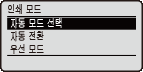 <자동선택>이 <자동 모드 선택>로 선택된 경우에는, 기기가 자동 선택 모드로 전환됩니다. 기기가 컴퓨터에서 전송된 데이터를 자동으로 분류하며 인쇄 모드를 선택합니다. 응용 프로그램을 통해 인쇄하는 경우, 보통 이 인쇄 모드를 사용합니다.