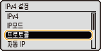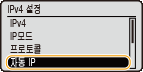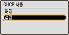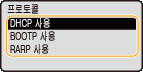 를 누릅니다.DHCP, BOOTP, RARP 프로토콜 중 한 가지만 사용할 수 있습니다. 선택된 프로토콜이 <설정> 로 설정되면 나머지 두 개의 프로토콜은 자동으로 <해제> 로 설정 됩니다.