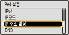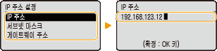 IP 주소, 서브넷 마스크, 게이트웨이 주소(또는 기본 게이트웨이)를 지정합니다.