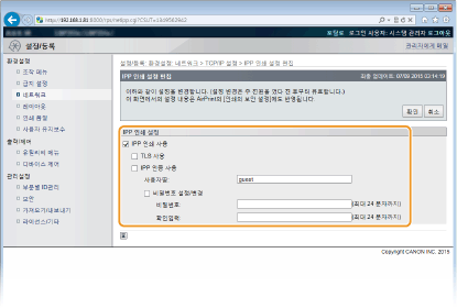 ![]() IPPS를 사용하는 경우, TLS 암호화 통신 기능을 활성화 합니다. 암호화 통신에 TLS 사용하기