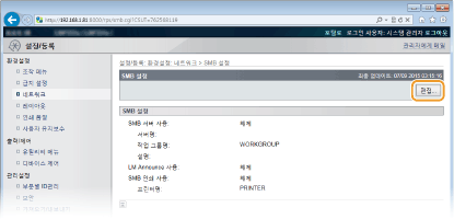 조작 패널의 설정 메뉴에서도 SMB 서버를 활성화 또는 비활성화 할 수 있습니다. SMB
