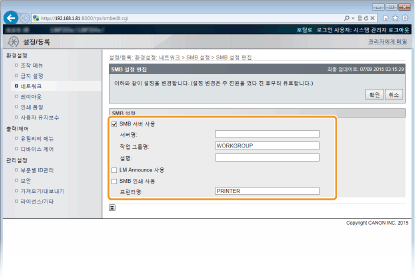 기기에 SMB 인쇄를 사용할 경우, 확인란을 선택합니다.