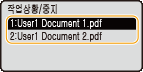 리모트 UI에서 취소리모트 UI의 [작업 상황] 페이지에서 인쇄를 취소할 수 있습니다: 인쇄 문서의 현재 상태 확인