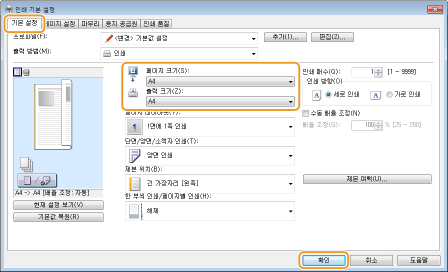 [출력 크기] 에서 용지 크기를 선택합니다.
