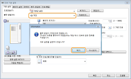 [저장]을 [출력 방법]에서 선택하고 [예]를 클릭합니다.
