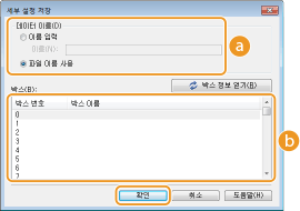 SD 카드에서 인쇄 데이터를 저장하는 공간을 상자라고 합니다. 문서를 저장할 상자의 개수를 선택하십시오. 상자를 쉽게 구분하도록 상자에 이름을 지정할 수 있습니다.