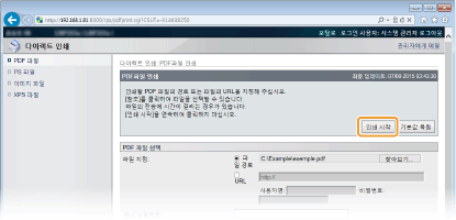 파일을 열지 않고 웹브라우저(리모트 UI)를 통해 파일을 인쇄할 수 있습니다. 또한, 웹에 URL만 지정하여서도 PDF 파일 인쇄가 가능합니다.