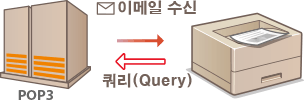 이메일 인쇄는 POP3 메일 서버로 수신된 이메일 메시지 및 첨부된 JPEG 또는 TIFF 이미지 파일을 컴퓨터를 사용하지 않고 인쇄하는 기능입니다. 이메일은 일정 간격으로 자동 수신되며 수동으로도 수신이 가능합니다. SMTP 프로토콜을 사용하는 경우, 메일 서버를 통하지 않고 기기로 바로 전송된 이메일이 인쇄됩니다.