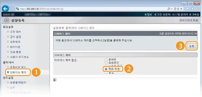 ) 를 눌러도 기기가 작동하지 않습니다. 기기를 온라인 상태로 설정하십시오.
