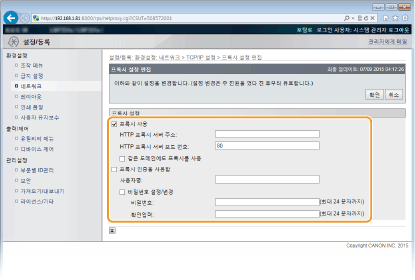 조작 패널의 설정 메뉴에서도 프록시 설정에 접근할 수 있습니다. 프록시 설정