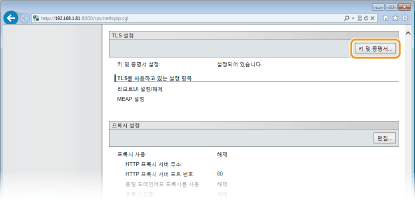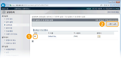 [리모트UI 설정] 또는 [IPP 인쇄 설정]에 의해 TLS가 이미 활성화된 경우에는 [사용키 설정]이 표시되지 않습니다. 사용할 키를 변경하려면 6단계를 참조하여 [리모트UI 설정] 또는 [IPP 인쇄 설정] 아래의 [TLS 사용] 확인란을 선택 해제합니다.
