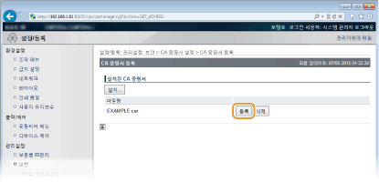 [키 및 증명서 등록] 또는 [CA 증명서 등록]을 클릭합니다.