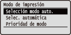 El equipo entra en modo de selección automática cuando se selecciona <Selección automática> para <Selección modo auto.>. El equipo discrimina automáticamente los datos enviados desde un ordenador y selecciona el modo de impresión. En principio, utilice este modo de impresión cuando imprima desde una aplicación.