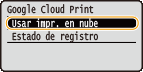 Habilite la función Google Cloud Print del equipo. También podrá desactivar la función Google Cloud Print del equipo.