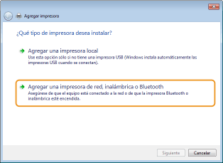 Si utiliza Windows Vista/7/Server 2008,haga clic en [Agregar una impresora de red, inalámbrica o Bluetooth].