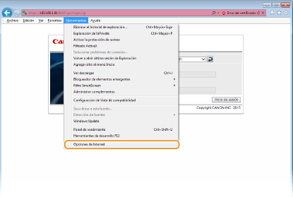 Introduzca "https://<dirección IP del equipo>/" en el campo de dirección y pulse la tecla [ENTRAR].