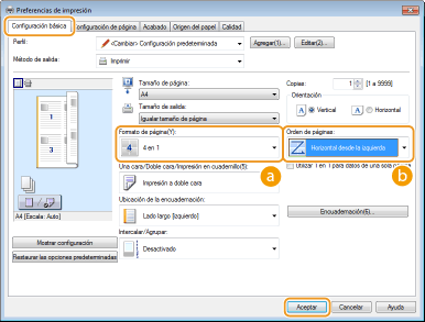 En [Orden de páginas], seleccione el formato de distribución de las páginas