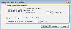 Haga clic en [Cuadernillo] para especificar la configuración detallada en caso necesario