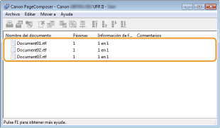 Para obtener más información, haga clic en [Ayuda] en la pantalla de Canon PageComposer.