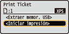 Si un archivo para imprimir está en formato XPS, se puede imprimir según el billete de impresión (opciones de impresión) asociadas al archivo.