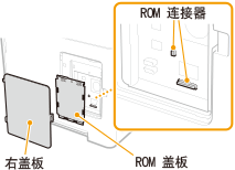 以箭头所示方向打开并取下 ROM 盖板。