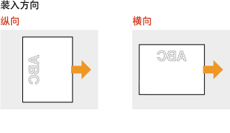 当使用的纸张有预印标志时,请在装纸时注意纸张的方向。请正确装入纸张,以便正确打印在带标志的一面上。