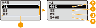 列出包含分辨率和墨粉浓度等打印质量的设置,并带简短说明。默认设置标有十字符 (