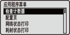 设置菜单)。还可以查看其它信息,包括剩余墨粉量、打印的页数和本机安装的存储器容量 (RAM)。