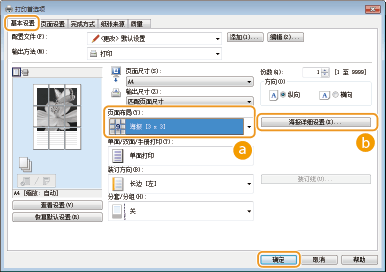 通过以下画面可以设置边框和粘贴边距。有关详细信息,请单击打印机驱动程序画面上的 [帮助]。