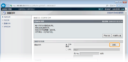 选择 [URL] 并输入 PDF 文件的 URL。如果执行了用户认证,输入用户名和密码。